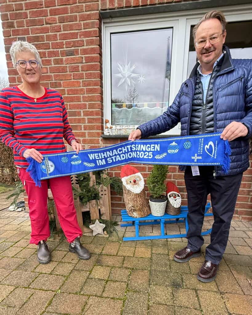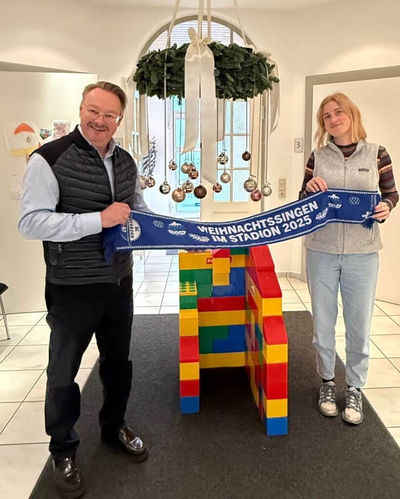 Diese besonderen Schals verbinden festlichen Charme mit wohliger Wärme – perfekt für einen unvergesslichen Nachmittag in der Home Deluxe Arena. Mit ihrem dunkelblauen Design und den festlichen Akzenten sind sie nicht nur ein stilvolles Accessoire, sondern auch ein Symbol der gemeinsamen Verbundenheit von Bürgerstiftung, Erzbistum und der SCP07-Familie. Sie laden dazu ein, die Weihnachtszeit in herzlicher Gemeinschaft zu erleben und das Miteinander in unserer Stadtgesellschaft zu feiern.